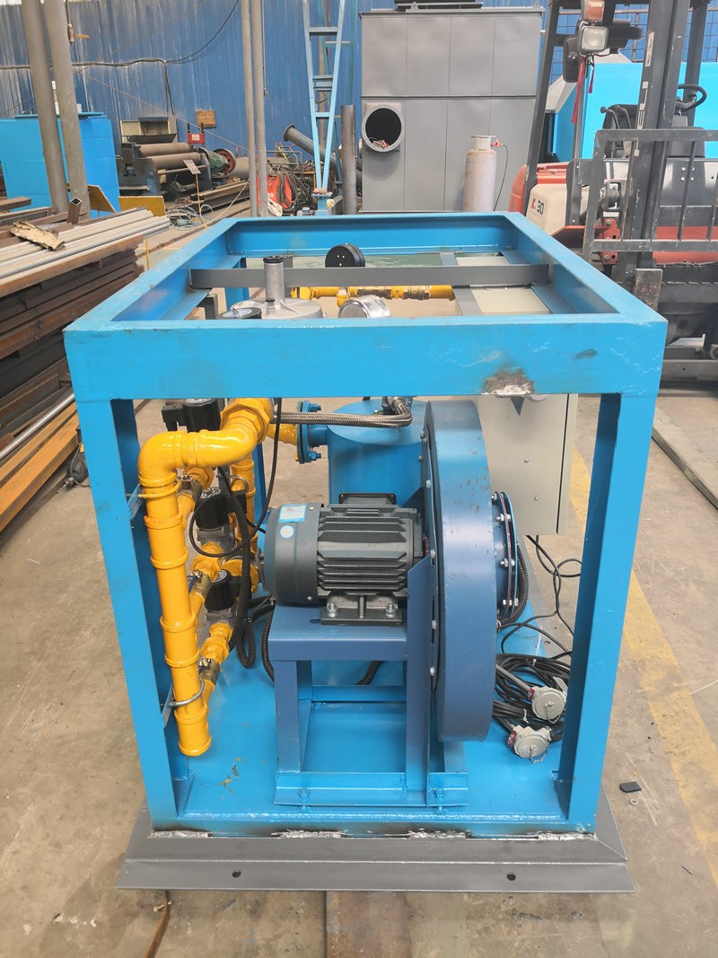 中間包烘烤器:包括燃燒器、鼓風(fēng)機(jī)、助燃風(fēng)管道系統(tǒng)和煤氣管道系統(tǒng),所述助燃風(fēng)管道系統(tǒng)一端連接鼓風(fēng)機(jī),另一端接入位于燃燒器前的煤氣管道系統(tǒng),還包括通過(guò)控制煤氣管道閥門(mén)開(kāi)閉自動(dòng)調(diào)節(jié)溫度的控制系統(tǒng),所述燃燒器為1-5個(gè)(根據(jù)膜胎尺寸確定),中間包工作層受熱均勻,易脫模節(jié)能效果明顯。