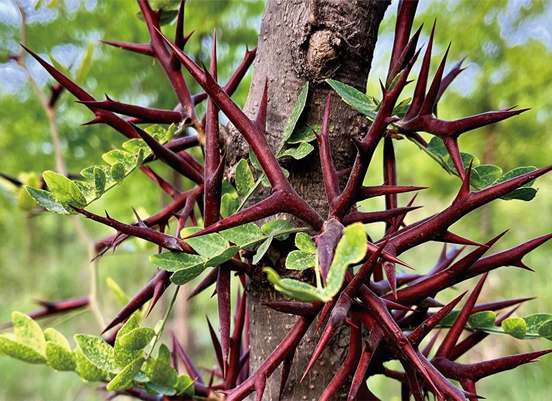 皂角樹多年生枝,以及樹干生長棘刺,棘刺多數(shù)分枝,刺粗壯,通常分枝即刺上長刺。皂角刺入藥可活血并治瘡癬,消腫排膿,搜風(fēng)拔毒等等。藥用價值很高。